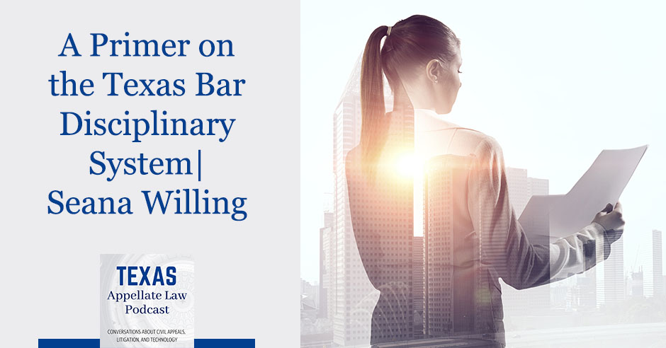 The Texas Bar is a self-regulating entity—it handles attorney discipline through a unique procedural process. Although most attorneys steer clear of professional discipline, it’s important for practitioners to know about the disciplinary system and how it works. This week, Todd Smith and Jody Sanders sit down with an expert on this topic, Seana Willing, Chief Disciplinary Counsel for the State Bar of Texas. Seana provides a helpful primer on the attorney disciplinary system and